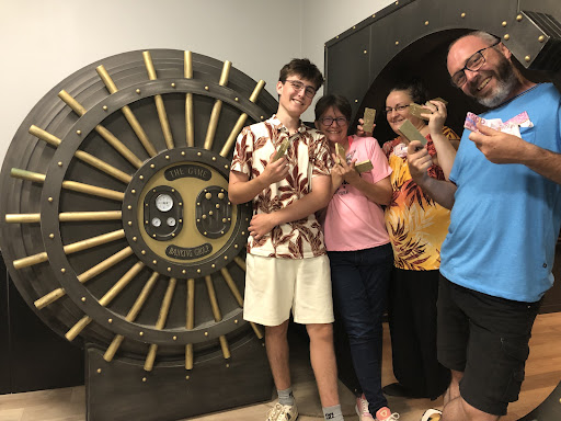 Février 2022 : On a testé, on a adoré. En famille à 4, on a déjoué les secrets de la banque et récupéré les documents compromettants pour Max. Merci à lui pour son aide. Quelques indices nous ont été nécessaires, juste ce qu'il faut pour ne pas être frustrés. Très bon accueil, énigmes bien ficelées, pas répétitives. Un peu de stress, juste ce qu'il faut. Une heure de marathon neuronal - 56:21 pour être précis ;) - et on s'est refait le film toute la soirée. Un vrai bon moment. Avec une photo souvenir. Une pensée pour...