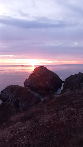 Al caer la tarde, el lugar se vuelve aún más especial: el sol desciende lentamente hacia el Atlántico, bañando de oro las paredes de la capilla y tiñendo los acantilados de tonos cobrizos. El viento trae consigo el sonido de las olas rompiendo abajo, mientras las gaviotas dibujan su vuelo en el cielo encendido.
