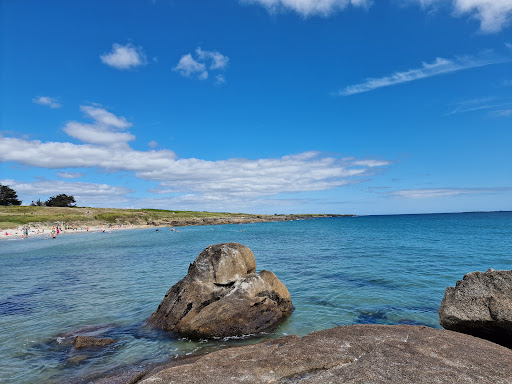 Plage superbe, grande mais à taille humaine, un peu enclavée donc tranquille. Elle est à l'abris du vent (après on reste en Bretagne, il y en a quand même !). Il y a peu d'algues, l'eau est belle. Le sable est fin et des roches sont présents si l'on souhaite partir à l'aventure. Deux parking et un petit chemin côtier permettent...