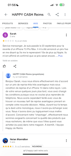A vraie dire c'est la première fois que je poste un avis et je suis mitigé. En découvrant l'endroit je les trouver plutôt plaisant, avec de tout, à des prix intéressant sur beaucoup de domaine différent. J'ai trouvé des jeux intéressant et à bons prix, je me suis donc laissé tenter par un jeux ps3 (saint row 4 les bijoux de famille) et un ps4 (vampyr). Maintenant je comprend pourquoi ils étaient pas chère, le magasin n'a clairement pas testé les jeux avant de les racheté sinon il aurait vu qu'il ne marché pas. J'ai installé saint row 4 normalement mais arrivé au menus principal un écran noir avec un contraste super élevé arrive, laissant à peine le "saint row 4" et "appuie sur start" visible et fait freezer ma console. J'ai réessayer 3 fois toujours pareil, j'ai ensuite essayer avec la console de mon frère en attendant encore 10 minutes que le jeu s'installe et rebelote au même endroit, même moment, un écran noir avec un super contraste qui laisse à peine visible l'écran titre "saint row 4" et "appuie sur start". J'ai donc lancer le jeu ps4 vampyr et pareil il déconne pendant l'installation des données du disque de jeu, j'ai du m'y reprendre 2 fois pour réussir et le jeu a finalement marché. Mais, il arrive fréquemment lorsque je joue que le jeu m'affiche des messages d'erreurs en bloquant le jeu (toujours le même code erreur d'ailleurs) qui après une vérification sur le site officiel de sony playstation, indique que cela provient du disque et qu'il est peut être endommagé. Après je me suis dit, bon tant pis j'ai gardé la facture j'ai juste à y retourner et me faire remboursé, lorsque je m'aperçoit qu'on a que 7 jours pour venir se faire remboursé. Etant donné que j'étais en vacance au moment de l'achat, et que la semaine suivante j'étais toujours en vacance et que je ne suis rentré que cette semaine, et que j'ai travaillé jusqu'à hier soir (samedi soir donc). Il m'était impossible d'essayé les jeux avant, et quand bien même je les avait testé directement en rentrant la garantie était déjà finis le jour même. Bref douche froide, je me retrouve avec un jeux qui ne marche pas et un qui plante fréquemment. Comme quoi il faut parfois payé un peu plus chère pour être sûr que la marchandise soit de qualité. Je ne pense pas refaire un jour des achats dans cette boutique ou en tout cas pas en jeux vidéo au vue de cette mauvaise expérience. Dommage, car comme dit plus haut le magasin a l'air intéressant et rempli de bonne chose, diverse et varié et à des prix abordable et contrairement à ce que j'ai pus lire dans certain autres avis, la seule personne que j'ai vu dans le magasin et qui m'a encaisser a été polie et courtoise avec le sourire et a su répondre à mes quelque questions. Les étoiles changeront sûrement si je refais des achats un jour dans cette boutique, et que cette fois les produits marchent...