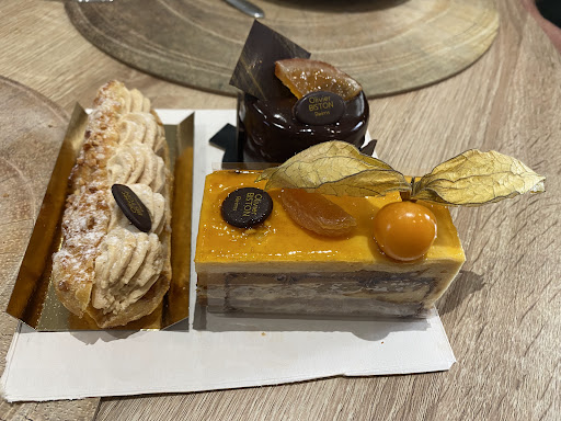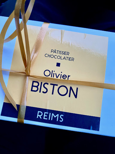 Du mercredi au dimanche, Marie-Laure et Alexandra vous accueillent dans une ambiance décontractée. N'étant pas un spécialiste des pâtisseries rémoises comme ce cher Hervé Arnaud (de la famille de Bernard Arnaud), je ne peux donner un avis clair et objectif que sur les viennoiseries. Celles-ci ont ce supplément d'âme qui vous fera dire : "Je ne peux plus en manger d'autres que celles-ci". Le chausson aux pommes cuit du jour et dégusté entre 8h et 8h45 (c'est important) est un ravissement. Il en va de même pour le pain au chocolat… D'ailleurs, pain au chocolat ou chocolatine ? Consultons monsieur Hervé Arnaud, docteur ès Pâtisseries rémoises. L'avis laissé par ce cher monsieur Arnaud m'amène à la galette frangipane. C'est bien simple, je ne peux plus en manger d'autres que celle-ci. Mais les viennoiseries et les pâtisseries ne sont pour Olivier que de l'échauffement. Olivier est un artiste chocolatier. Tel Jimmy Hendrix qui entame un solo, Olivier entre en transe quand il se lance dans une reproduction de la Place Saint-Pierre en chocolat Enfin, peut-être est-ce une légende urbaine, il est possible d'y croiser l'artiste Prieur de la Marne. Il y a ses habitudes entre 8h et 9h, du mercredi au dimanche. Je l'ai récemment découvert à la Petite Halle de Quartier Libre et lui et son petit chien Riton me sont devenus immédiatement sympathiques. En plus d'être un immense artiste et un amateur éclairé en viennoiseries, c'est un cœur à prendre et un bon parti. Sa maman aimerait le voir marié ou pendu dans l'année. Mesdames, n'hésitez donc plus dans le choix de vos pâtisseries ! Et si d'aventure vous rêvez d'une pièce montée pour le grand jour, vous pourriez bien rencontrer l'homme de votre vie chez Olivier Biston, du mercredi au dimanche...