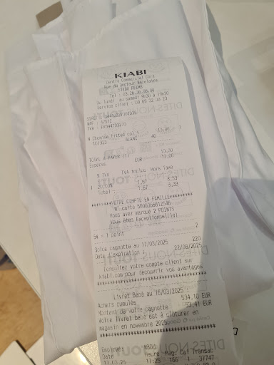 Read moreJe suis venue acheter une tenue complète à kiabi la neuvillette et la caissière sest permis de porter un jugement sur mon physique de m'attaquer en me disant que comme j'étais enceinte j'avais droit à une carte et des réductions.je lui dis que je ne le suis pas et elle insiste grossièrement comme quoi vu que jai très mauvaise mine et que j'ai du ventre ...c'est inadmissible et au lieu de s'excuser. Elle insiste.j'en ai parlé au kiabi de venette qui eux sont très gentils et c'est eux qui se sont excusés pour reims. Le monde à l'envers. Je déconseille à tous ceux qui ne sont pas taille mannequin d'aller à reims kiabi la...