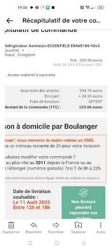 Je ne peux pas mettre 0...Très déçue, j'aime bien le magasin mais là ça fait 2 fois que je rencontre un problème. Premier problème: je commande un produit en ligne, à la date de livraison annoncée je me rends au drive et après une longue attente dans ma voiture on me dit que le produit n'est pas arrivé. De plus, on ne sait pas me dire quand il arrivera. Je vais à l'accueil comme conseillé par le gars du drive pour un remboursement car j'étais pressée c'était pour un cadeau donc je n'allais pas les attendre. Sauf que la personne de l'accueil a mal fait son truc et a traité ma demande comme un retour produit donc blocage du remboursement.... J'ai dû me déplacer 2 fois de plus en magasin pour que finalement on me dise d'appeler un numéro... Bref j'ai fini par être remboursé sous 3 semaines au lieu de 48h. 2ème problème: ma machine à laver achetée en 03/2024 tombe en panne (après avoir déjà été dépannée un peu plus tôt..) je fais une demande de SAV le 14/11, je les appelle le 16/11, on me propose un rendez-vous le 26/11 le temps de recevoir la pièce. Bon déjà je trouve ça long (6 à la maison sans machine à laver..) mais bon je peux comprendre, on me propose un prêt mais j'explique qu'étant en appartement je ne peux pas stocker 2 machines (oui parce qu'on doit garder la machine en panne en plus de celle de prêt). On m'appelle le 22/11 et là on me dit que la pièce ne sera pas dispo le 26/11, on doit annuler le rendez vous mais je n'aurai pas de rendez vous avant le 9 décembre (c'est une blague?). Je précise qu'en attendant je paye 4,50 euros par jour en moyenne pour le lavomatique. Un geste commercial? Elle me répond en gros qu'elle n'y peut rien si je ne veux pas le prêt d'une machine. (là elle m'a un peu énervée même si certains diront qu'elle a peut être raison). Ce qui m'a énervé en fait c'est que s'ils avaient anticipé un peu mieux le délai de livraison de la pièce j'aurai peut être eu un rendez vous le 28/11 par exemple quand j'ai appelé le 16/11.. et la pièce aurait été là. Donc là je suis en train de réfléchir au fait de prendre le prêt.. mais bon est ce que la machine de prêt sera bien livrée dans les 48h? Est ce qu'ils ne vont pas me prendre ma caution (oui car il faut une caution) si la machine tombe en panne sans que ce soit de mon fait par exemple? Et est ce que j'ai envie de vivre avec une machine à laver dans mon salon? Au delà de tout ça, ce qui m'énerve le plus je crois que c'est la façon de répondre de tous ces conseillers en magasin ou en ligne, ils sont très condescendants, vraiment c'est désagréable. De plus Boulanger ne fait jamais aucun geste commercial, ils en ont vraiment rien à faire de leurs clients. En clair, j'ai plusieurs produits venant de chez eux mais franchement ça ne donne plus envie pour mes...