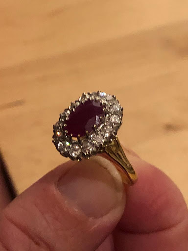 Nous avons effectué l'achat de deux bijoux dans votre maison familiale. Une bague en or blanc avec diamants le 14 février 2021 au nom de GUYOT.