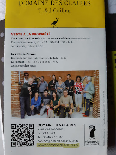 Nous avons découvert ce domaine vraiment part hasard grâce au restaurant La Grève à la Tremblade où nous avons déjeuné et qui propose leurs vins à la carte. Un domaine discret mais avec des valeurs fortes et engagées qui propose vins, pineaux et cognacs en certification bio. Coup de coeur pour la cuvée Presqu'île en blanc que nous avons acheté. Je ne pensait vraiment pas pouvoir trouver des vins de cette qualité ici. La longue panoplie de concours et de médailles gagnés en dit long... Comme quoi, même notre beau Poitou Charentes propose de belles découvertes et n'a rien à envier aux plus grands. De profonds et sincères remerciements à Avila, le jeune saisonnier souriant et heureux de nous faire partager et découvrir tous les produits. A peine franchi le seuil de la porte, qu'il nous propose visite de la distillerie et dégustation de toute la gamme (qui représente quand même une quinzaine de produits). Sa joie de vivre et sa bonne humeur ont vraiment rendu ce moment convivial et enrichissant....