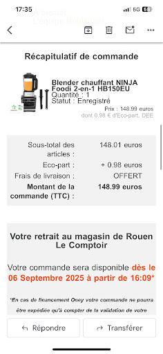 Read morecata! 2 RTT pris pour attendre la livraison et toujours pas de machine à laver utilisable...première fois, on oublie de me prévenir que la machine n'arrivera pas, seconde fois, livraison partielle...livreur désagréable qui me dit de choisir une autre machine plus petite car peu pratique pour lui à livrer, trop grosse et pas de poignée... (Genre je suis responsable de l'absence de poignee de transport! Qui achète une machine en fonction du livreur et non pas pour son besoin personnel de vie quotidienne ??) Il fait savoir qu'il n'est pas déménageur et abime la machine (involontairement) en me la laissant dans le couloir de l'entrée.. Pas installée, abîmé e..et je dois encore prévoir une troisième venue (donc prévoir à nouveau un congé et une garde d'enfant) en espérant que cette fois, ils auront pensé à la logistique.... En espérant aussi que l'impertinence du livreur se sera calmée... Je trouve grossier qu'il me dise quoi acheter à ma place. Et pour la machine abîmée, bah ça... ????? ... Le second livreur était plus mesuré dans son discours et plus posé. Mais pour l'instant expérience médiocre... Et coûteuse en temps et en finances ...À...