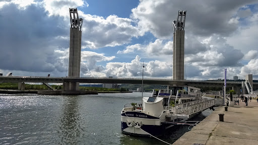 Large path that allows you to walk from one end of the town to the other and see some of the tourist sites and working parts of the docks. Few restaurants, cafes, maritime museum, modern and historic bridges, squash club. Very busy at the weekend in the main sections but quieter towards the ends. It's also where the ships that cruise the river...