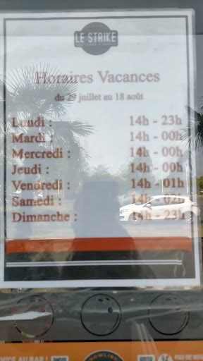 Read moreLa salle et l'ambiance est sympa , bien que un peut vieillot ( je sais c'est le style , mais la il n'est pas très réussi). Les prix correct pour un bowling. Pas d'attente ( sûrement du au covid ). Serveuse agréable et nous a servi rapidement. Par contre il faudrait revoir grandement les pistes qui sont vachement bosselé ( sûrement jamais changé depuis ) et un manque de boule ( ou pas ranger comme il faut) et certaines sont vraiment trop abîmé pour jouer correct. Pour jouer avec des copains je met 3.5 ☆ mais si vous êtes un bon joueur je mettrait 1.5 - 2 ☆ car sans ces conditions faire des strikes n'est pas évident ( mes score en moyenne sont entre 110 et 150 normalement, record 185, et là en 2 parti 80 et 90 ). Attention prévoir sont pass sanitaire. Sinon mise à disposition de masque neuf et gel désinfectant. Donc très bon point. Les minis jeux à côté sont très sympa et...