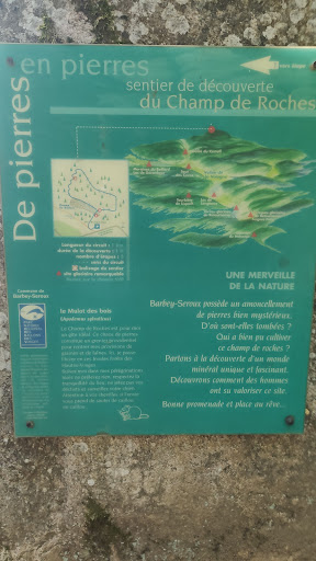 Read moreUne petite promenade d'une heure à pied. Avec les enfants vous vous promener entre les sapins, les boulots, et les pierres. C'est d'ailleurs curieux ce regroupement de petites et grosses pierres sur un chemin d'une cinquantaine de mètre en largeur sur plusieurs centaines de mètre de long. Les géologues ne l'expliquent d'ailleurs pas. Un parking est disponible au départ...
