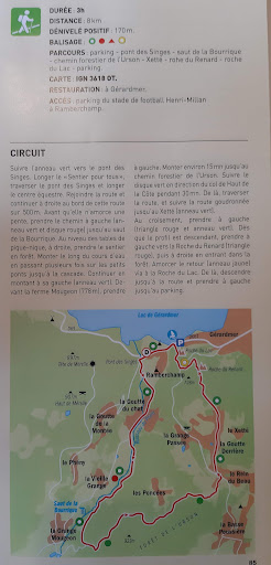 Un circuit existe pour les marcheurs d'une durée de 3 h, d'une distance de 8 km avec un dénivelé positif de 170 m. Le balisage à suivre et le cercle vert avec un centre blanc, et le rond rouge, le triangle rouge, le cercle jaune et blanc au milieu. Carte IGN 3618 OT. Le départ du parcours pour la cascade du Saut de la Bourrique est au parking au bord du lac, parking du stade de football Henri-Milan à proximité du camping Ramberchamp. Circuit : suivre l'anneau vert vers le pont des singes. Longer le « sentier pour tous », traverser le pont des singes et longer le centre équestre. Rejoindre la route et continuer à droite au bord de cette route sur 500 m. Avant qu'elle n'amorce une pente, prends le chemin à gauche (anneau vert et disque rouge) jusqu'au saut de la bourrique. Au niveau des tables de pique-nique, à droite, prendre le sentier en forêt. Monter le long du cours d'eau en passant plusieurs fois sur les petits ponts jusqu'à la cascade. Continuez en montant à sa gauche (anneau vert). Devant la ferme Mougeon (778 m), prendre à gauche. Monter environ 15 minutes jusqu'au chemin forestier de l'Urson. Suivre le disque vert en direction du col de Haut de la Côte pendant 30 minutes point de là, traverser la route, et suivre la route goudronnée jusqu'au Xetté (anneau vert). Au croisement, prendre à gauche (triangle rouge et anneau vert). Dès que le profil est descendant, prendre à gauche vers la Roche du Renard (triangle rouge), puis à droite en entrant dans la forêt. Amorcer le retour (anneau jaune) via à la Roche du Lac. De là, descendre jusqu'à la route et prendre à gauche jusqu'au parking.