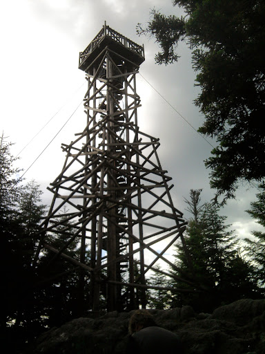 Magnifique tour de bois , 95 marches en colimaçon pour monter au maximum 4 personnes à la fois, on doit donc faire la queue et patienter mais la vue vaut le détour.accessible en voiture jusqu'à presque en haut, il est plus sympa d'y aller en marchant. Des tables de pique-nique sont aux abords. Nous ne sommes pas loin de la cascade de merelle, d'un étang et...