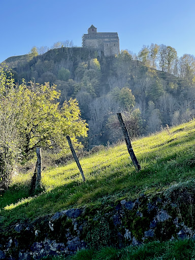 From CenterVille Murat the hike was easy … except for the final ascent from the highway as the leaf-covered trail was wet and muddy in places; I was thankful for my hiking poles. Once at the Church, the view was lovely of the surrounding valley of fields with grazing cows, small villages and Murat. The cemetery had a service going on when I arrived so I climbed the adjacent hill and got the bonus of even better views! The chapel itself was closed and had a construction fence around it as it undergoes an exterior “facelift” so I hope to return in the future. Meanwhile, the site is also accessible by car so there’s no excuse to skip it if you’re in...