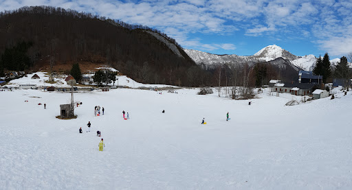 Luge gratuite sur pistes damées par les machines de la station de guzet toute proche dont une piste aboutit ici. Parking facile. Restauration sur place. Idéal...