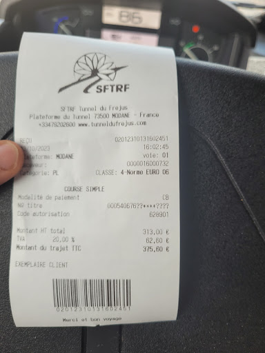 Read moreCost is 55€ one way. Or 68€ round trip but must be done within 7 days!! Located on E70 la maurienne. We got a 30 mins block as not possible to pay with the automatic device. Must be paid separately and quiet a queue. One side is France...