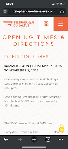 I checked the Téléphérique du Salève official website before planning my day—it clearly stated the last descent on Wednesdays was 10:45pm. Updated for the 2025 summer season and everything. Great! I thought. Sunset views, maybe a cheeky wine, then glide back down like a smug little mountain goat.