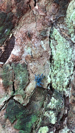 Avec de la chance, vous pourriez apercevoir, au creux d'un arbre, un Matoutou Falaise, superbe mygale aux...