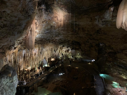 Inside the cave you walk down a path then you arrive at the top of the cave and you can look down. At this balustrade you first watch a light and sound show inside the cave. Then you get a tour of the cave and are told all kinds of things. As a finale, you get to see another show with music.