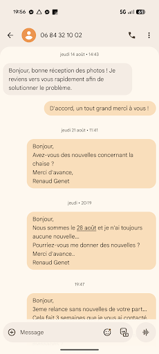 Read moreBonjour, joli magasin, propre, lumineux mais... Il y a un mais.... Nous avons rencontrĂ© un problĂšme avec un sommier, que nous avons achetĂ© en octobre 2022 . Ce dernier est trĂšs mal conçu et ne supporte pas le poid du matelas que nous avons. Nous avons pourtant achetĂ© le modĂšle d exposition ( sommier et matelas ). Nous demandons a ĂȘtre tenu informĂ© mais le responsable est toujours occupĂ© ou absent. On vient donc d aller acheter un autre sommier ailleurs car nous dormons au sol depuis 3 semaines. Ce n ai pas normal. On doit lever le matelas chaques matin , est ce une vie? Si les ressorts s abĂźment a l intĂ©rieur cela sera pris en charge par le sav ?