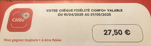 Et ce n’est pas tout ! En faisant mes achats, je crée mon compte CONFO+, qui, lors de son ouverture, offre 5% de la somme achetée en bon d’achat. Plus de 900€ dans mon cas, soit presque 50€ de bon… Quelle ne fut pas ma surprise de ne recevoir QUE 27,50€.