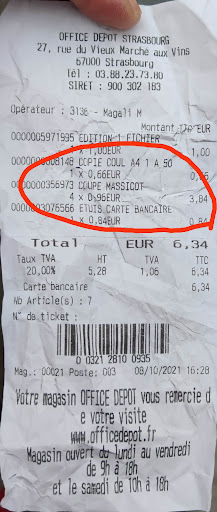 L’accueil correct mais personnel incompétent. La taille de mes impressions A4 change d’une photocopieuse à une autre, ce qui est sûrement un problème de paramétrage des photocopieuses. J’ai demandé des impressions N&B en A4 à partir d’un pdf (7 centimes/page), mes impressions sortaient trop petites sur la feuille A4 (Je les ai ramené chez moi et comparé avec les mêmes types d’impression que j’ai fait imprimées chez Office dépôt l’autre fois). Je suis revenue et en ai parlé avec la vendeuse qui a essayé d’imprimer sur une autre photocopieuse. Alors que cette fois-ci la taille de mes impressions était correcte. Elle m’a expliqué que c’était à cause des différentes photocopieuses et que pour avoir la taille correcte je dois demander des impressions N&B sur la machine d’impression couleur et celle-ci coûte 18 centimes, bcp plus cher. Elle ne peut pas imprimer normalement avec la machine qui sert seulement pour les impressions N&B. Cela me semble bizarre! Elle m’a dit également que c’était mon fichier mais ce n’était pas vrai! J’ai toujours le même fichier et elle l’a essayé sur 2 machines, les résultats ne sont pas pareils. C’est sûrement un problème de chez Office depot. Et moi je ne peux pas savoir qu’il existe ce problème! Bref, j’avais confiance en eux, je pensais qu’en payant plus cher j’aurais un service rapide et de qualité. Mais en retournant réclamer le problème, on ne m’excuse même pas! On m’a presque dit que je n’aurais que retourner chez moi et imprimer moi-même mon fichier. Même si on m’a remboursé, ce n’était pas juste pour moi! Finalement, je suis allée à Strasprint, pas loin, 10 centimes la page N&B (le papier, selon mois, est plus de qualité que celui à 7centimes chez Office dépôt) et pas de frais prise en charges de fichier....