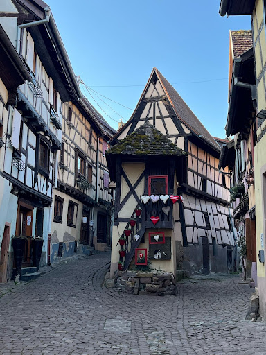 Thierry then took us on a walk of the quaint village of Eguisheim and explained its history as a double-walled layout, its half-timbered housing, its notoriety as the birthplace of an Alsatian pope (Leo IX), and customs such as door decorations.