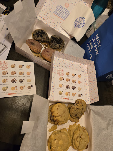 Read moreJe suis habituer Ă prendre des boites de 12 cookies depuis presque 2ans a nation la j'ai voulu tester a val d'europe sincĂ©rement je suis trĂšs déçu cookie trĂšs petit comparer a nation ou gare de lyon et les coter sont trĂšs dur et mon cookie prĂ©fĂ©rer le thĂ© matcha un massacre il n'avait pas la mĂȘme couleur que d'habitude un gout de farine et le dessus tout blanc comme si on l'avait napper de farine 3 fois que j'y vais la premiere fois j'en est eu pour 26⏠je n'est pas pas pu avoir des points sur mon compte fideliter les cookies etait pas mauvais je me suis dit le temps qu'ils se forment pourtant j'avait informer sur messenger on m'a dit il vont faire le necessaire et la 2eme fois j'ai pris que 2 cookies pour regouter il n'etait pas assez cuit et seffritais et la 3eme j'ai pris 4 cookies la j'etait obliger de mettre un avis en temps que cliente fidĂšle mais de sur je ne reviendrai plus a val d'europe j'ai usĂ© 38,40⏠et aucun point sur mon compte et des cookies vraiment pas bon comparer Ă ...