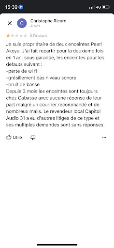 Ps: c’est peut être ma tête qui ne lui ai pas revenu ou une mauvaise journée ce que je peux comprendre. Je pense qu’ils sont très compétents en hi-fi mais encore une fois la libre concurrence est essentielle et ils ne sont pas les seuls...
