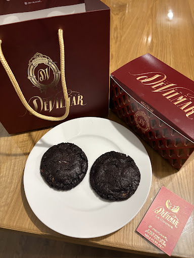 Le Devilmar, c’est un cookie triple chocolat avec cœur fondant de chocolat blanc, des pépites de chocolat au lait et blanc, le tout niché dans une pâte cacao Valrhona. Autant dire un coup de foudre assuré. Les ingrédients sont maison, sourcés avec amour chez des producteurs français et locaux, et travaillés avec une précision qui force le respect.