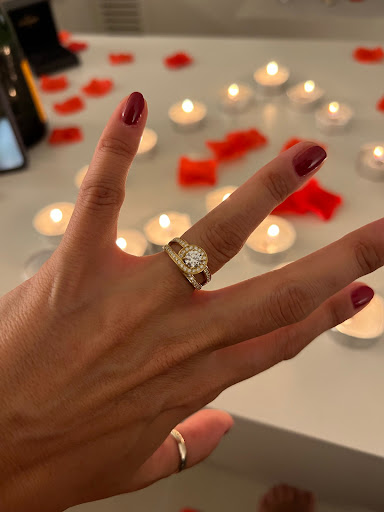 De plus, le diamant central a une légère teinte jaune, ce qui ressort davantage entouré des petits diamants ajoutés autour. J’aurais apprécié un conseil sur ce point, surtout compte tenu du prix de la réalisation. Un accompagnement plus poussé aurait pu m’aider à anticiper ce contraste et éviter cette petite déception.