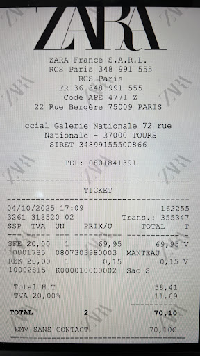 Read moreTrĂšs mauvaise expĂ©rience : M'Ă©tant rendue Ă Zara pour le remboursement d'une robe qui a Ă©tĂ© achetĂ©e dans ce magasin et offerte Ă l'occasion de mon anniversaire, il s'est produit une erreur de lecture du ticket qui renvoyait Ă un article dĂ©jĂ retournĂ©. La vendeuse en caisse a donc demandĂ© Ă sa cheffe de prendre le relais au vu de la situation qui la dĂ©passait. N'ayant que le ticket cadeau et non le ticket de caisse, la responsable me demande d'appeler la personne ayant achetĂ© l'article pour savoir si elle Ă©tait en possession du ticket de caisse. 28 jours s'Ă©taient Ă©coulĂ©s depuis l'achat, je soulignais que contacter mon amie ne solutionnerait sans doute pas le problĂšme car il est rare de conserver un ticket si longtemps. La responsable se rĂ©signe aprĂšs grande insistance et appelle le service client puis revient vers moi, elle m'annonce pouvoir faire un retour sans ticket en me faisant remarquer qu'elle n'avait mis que 3 minutes pour appeler alors que j'aurais pu appeler mon amie. Je lui ai fait tout de mĂȘme noter que cela faisait dĂ©jĂ 30 minutes que nous Ă©tions en discussion sur ce remboursement...Par ailleurs, on m'a fait comprendre qu'il y avait beaucoup de vols dans la boutique : un sous-entendu Ă la limite de l'indĂ©cence Ă l'image des vendeuses...