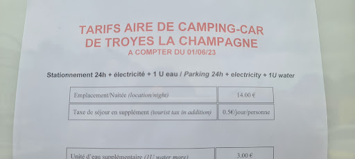 Fabulous site and probably the best aire we have been on so far. We stayed 2 nights but it’s a site you could stay longer if you wanted to explore Troyes, which is a beautiful city with lots to see. It has been upgraded into a lovely landscaped site with spacious shady pitches. It’s in a great location with a garage on one side and Aldi on the other. The local bus to Troyes is outside Aldi and costs a few euros each for one single trip. We opted single as we took Uber back that was about 12euros. Would definitely recommend and will return in the future. It does get busy on the water and grey waste area on arrivals and departures when it’s busy mostly...