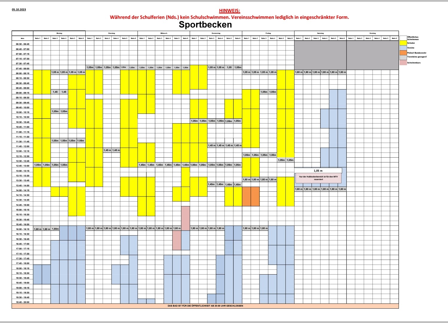 Solebecken: Man zahlt zwar den vollen Eintritt und kann natürlich auch in das Solebecken, jedoch geht dies nur ab 20:00 Uhr wenn der normale Hallenbadbetrieb aus ist. Ansonsten ist dies nur mit Badehose möglich. Danke für die Info….