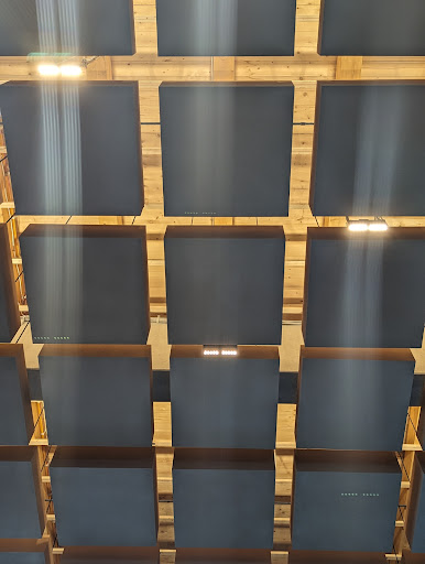 Die "Turmsauna" ist für bis ca. 6 Personen oder 4 Paare wirklich heimelig. Die "Panoramasauna" mit der Größe eines großen Klassenraums erinnert an die Wartehalle in einem Flughafen und auch die "Kräutersauna" besticht nicht durch ein gemütliches Ambiente. Da hätten Unterteilungen - auch für weitere Themen" sicher gut getan. Getoppt wird die Gemütlichkeit durch den Ruheraum der mit einer Decke aus Sichtbeton und unverkleideten Luftkanälen, dafür ohne Pflanzen oder andere Raumteiler eher an eine umgenutzte Autowerkstatt erinnert. Die beiden großen Saunen und der Ruheraum sind zum "Gang" - der überdachten Fläche vor den Räumen - und zum Außenbecken voll verglast und laden zum Schaulaufen ein. Zu Unterteilungen (s.o.) ich brauche an einer Sauna nicht unbedingt ein Fenster nach draußen ... .
