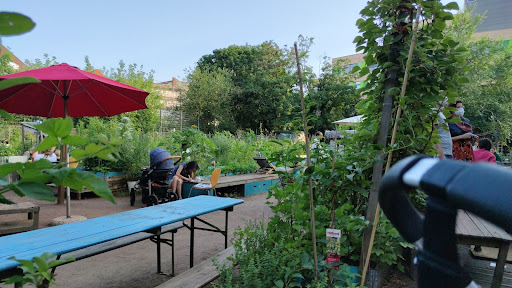 A community urban garden, with a restaurant that serves dishes made from in-house grown plants and a bar. That is amazing on it's own! They also run workshops of different topics, not only gardening. There are beehives and a wood fired bread / pizza oven. You can choose to sit on at a wooden table or a swing or a hammock or pallets. Or you can hide between boxes with plants. It's not exactly designed to be cozy or nice. It's as cozy as a green garden gets on it's own. We've had veggie burgers with salad and a soup. It was all delicious and affordable. Knowing how local the ingredients were, it's amazing food experience. It's good to bring kids, they have some toys for the little ones and a sandbox. One downside is that it's located just by a busy street. There's a sign saying they will have to move to another place by November 2019 and they don't have the new place yet. I don't know the story but I guess that resonates with the graffiti above the garden that reads "still not loving gentrification". It's sad to see how Berlin became victim of...