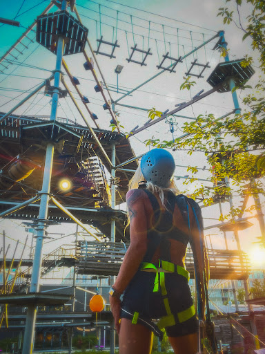 My kids have tried rope courses all around Europe and this is by far the best urban ropes course we have done. It is great, multiple levels with a range of technical and height challenges. They even have an old car strung up that you climb through. The staff are extremely helpful and the best part is you can stay on it as long as you like. There is no fixed course you have to take, you can try some elements multiple times. Really I can not recommend this highly enough. For those that do not want to climb there is a bar and cafe at the bottom with good food and drinks at a reasonable price. Also beach volleyball courts where the ladies were enjoying the eye candy of some young German...