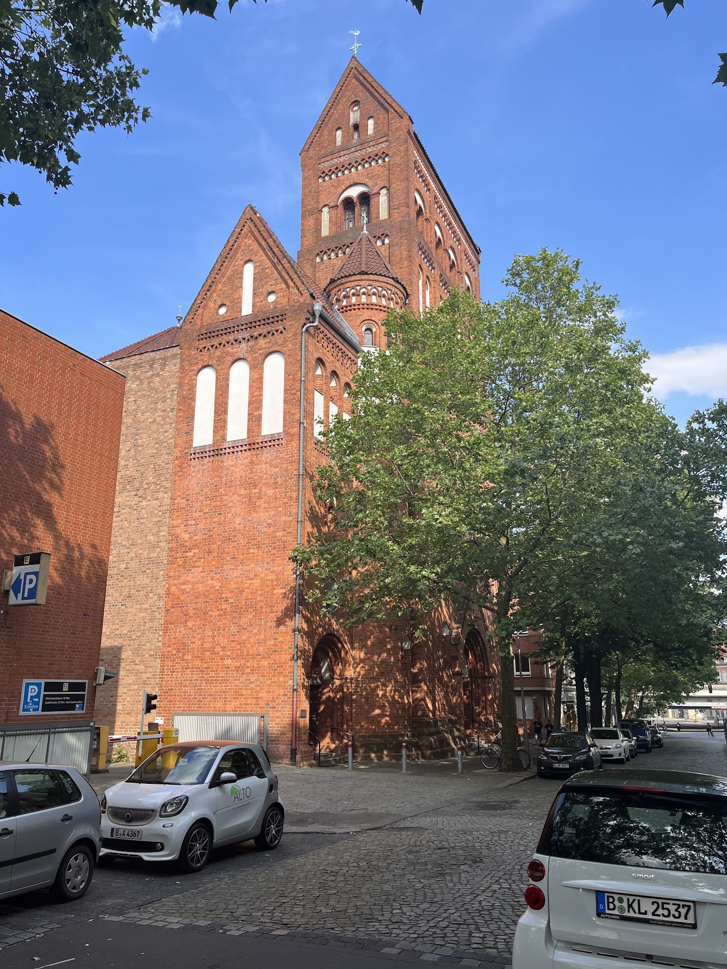 Eine wunderschöne Kirche, eine der schönsten in Berlin und Umgebung - gar keine Frage ! Wenn man allerdings als praktizierender ( nicht konvertierter ) Katholik am Palmsonntag zum Gottesdienst wie üblich mit einem Palmzweig kommt und der Herr Pfarrer die Palmzweige nicht segnet, sondern den Leidensweg Christi - der meist am Karfreitag gelesen wird, oder an einem anderen Tag in der Karwoche - mit zwei anderen liest, fühlt man sich schon sehr eigenartig. Dabei ist der Pfarrer nie zu verstehen. Weder ich noch sonst jemand, mit dem ich bisher dort war, hat jemals eine Prädigt vollständig verstanden. Er hat zwar ein Mikrofon vor sich, spricht aber dermaßen leise und undeutlich, hat den Kopf so sehr gesenkt, als wolle er unter dem Altar verschwinden, dass man sich regelmäßig fragt, wozu er überhaupt Predigten schreibt, wenn die sowieso niemand hört. Zusätzlich hat man am Palmsonntag die Dame am anderen Mikrofon, die an der Kanzel stand, überhaupt nicht gehört. Dass der ziemlich übertrieben "perfektionistisch" agierende Pfarrer (dessen Messen jedes Mal weit über eine Stunde dauern) etwas merkwürdig ist, ist bekannt, aber die anderen sollten doch merken, dass sie in diese Mikrofone lauter sprechen und vor allem den Mund aufmachen müssen, damit wenigstens in den vorderen Reihen etwas ankommt. Mit dem liturgischen Ablauf der katholischen Kirche sollte sich auch, meines Erachtens nach, etwas mehr beschäftigt werden, anstatt nur diese übertriebene Demut zu...