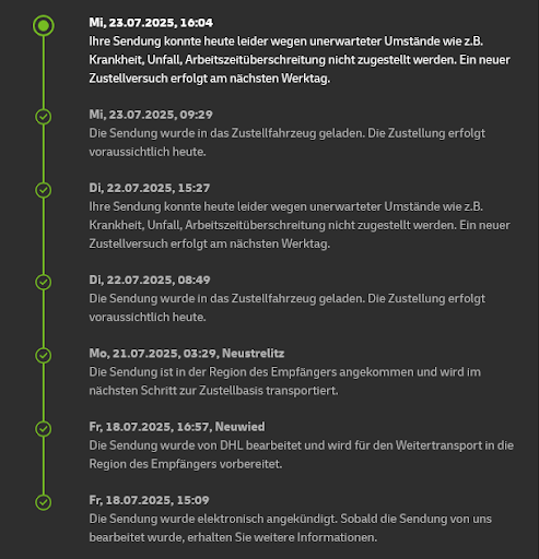 Absolut unterirdischer Kundendienst! Drei Pakete sind während meines Urlaubes verschwunden, da diese abgestellt wurden, ohne eine Abstellgenehmigung zu haben. Ich habe dann an DHL eine Mail bzgl. diesen Vorfall geschrieben. Antworten kann man dann auf die Antwort von DHL nicht, damit man einen durchgängigen Schriftverkehr hat, man muss jedesmal von vorne anfangen. Also ich angerufen habe, wurde mir nur gesagt, ich hätte eine E-Mail, da steht die Antwort! Dann können sie sich eigentlich den Telefonservice einsparen, wenn man dort keine Auskunft bekommt und die nichts auf die Reihe bekommen! Mir wurde nur mitgeteilt das ich eine Abstellgenehmigung erteilt hätte, nach der Aufforderung mir diese zuzuschicken bekam ich natürlich keine Antwort. Ein Paket war von meiner 2 jährigen Tochter, scheinbar ist die Hochbegabt und hat auch eine Abstellgenehmigung erteilt. Bis dato wurde mir seitens DHL überhaupt nichts vorgelegt! Mir wurde dann bestätigt das die Abstellgenehmigung gelöscht wurde, komischerweise werden die nachfolgenden Pakete bis heute immer noch abgelegt, obwohl ich die Bestätigung seitens DHL habe! Wollen die mich verarschen und ihre Dienstleistung die man bezahlt einfach nicht ordnungsgemäß ausführen? Schlichtungsverfahren wurde anschließend eröffnet, bis jetzt keine Antwort. Ich werde nächste Woche in die Verbraucherzentrale fahren und sollte das nicht zum Erfolg führen, einen Anwalt...