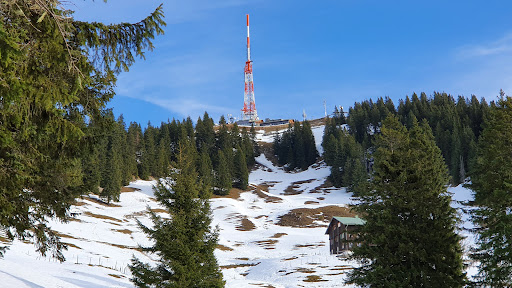 Read moreDer durch den Sendemast des BR markante und weithin sichtbare Wächter des Allgäus, mit dem Hauptgipfel Übelhorn nördlich des Jägerdenkmals, lädt zu allen Jahreszeiten mit seinem schönen 360° - Panoramablick zu einer Besteigung ein. Für die Tour bei Schnee von Nordosten über die Grüntenhütte und den drahtseilversicherten Ostgrad mit Leiter zum Jägerdenkmal, wie auch die Route über den Winterweg und die Schlüsselstelle unter der Grünten Seilbahn in Richtung Jägerdenkmal, sollte man zur eigenen Sicherheit auf jeden Fall Grödel anlegen. Je nach Schneelage geht aber auch ohne Schneeschuhe gar nichts. In der Maps location JÄGERDENKMAL habe ich unter Neuigkeiten eine Anmerkung mit zwei Bildern hinterlegt. Wer in der schneefreien Zeit eine lange Tagestour nicht scheut, startet an der Starzlachklamm, durchquert diese, steigt zur Alpe Topfen auf, erklimmt über den Winterweg und Abzweig links das Burgberger Hörnle, kommt danach zu Sendestation und Jägerdenkmal, steigt über den Nordostgrad ab, umrundet den Bergstock, nimmt die Richtung Obere Schwandalpe (bewirtschaftet) und steigt weiter ab zum Ausgangspunkt. Wer noch nicht genug hat, wie wir vor 2 Jahren, kann auch noch die Ruine Burg...