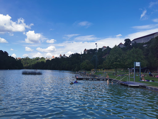 Read morePro: Wunderschöne Lage entlang der Burg und eines Wanderweges Es gibt ein Eisbad im Winter, welches kostenlos ist, mehrere Umkleiden und eine kleine Sauna besitzt der See ist relativ groß, es gibt einen Volleyballplatz und viel Liegefläche Am Eingang kann man Graßkarpfen betrachten und man kann Tretboote ausleihen