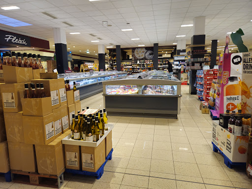 Very well stocked very large Rewe supermarket. They even have a sushibar where they made fresh sushi. We loved the california salmon crunch sushi with sriracha. Was fun to see the making of it as well. All kinds of fresh produce and ready made meals. Ideal for when you are on a vacation ( as we were) and want to whip something up fast. Stock ranges from breads,meats,a deli,wines,toys,bras,candy,office supplies,frozen section and much more. The bakery where you can sit and have a coffee with an extra something is amazing. The store is very clean and the service is friendly...