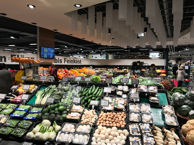 Der Markt selbst ist noch recht neu (um die 2 Jahre) Leider aufgrund der Grundstücksgröße etwas beengt. Eine zweite Etage hätte gut getan. Es gibt einen guten Bäcker mit Cafee und ein Antipastihändler.