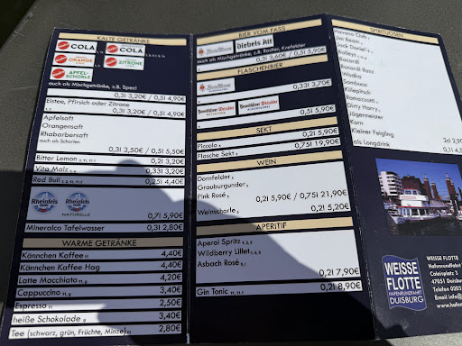 Read moreWir waren zu dritt zu Gast bei der Weissen Flotte Duisburg für die Silvesterfahrt 2023/2024. Bezahlt haben wir pro Person rund 160€, bekommen sollte man dafür eine Fahrt auf dem Rhein bis nach Düsseldorf, Party an Bord, ein Galabuffet und Getränke (Soft, Bier, Wein). Das ist zumindest das, was auf der Webseite angepriesen wurde.