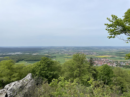 Read moreVom Högelstein hat man eine schöne Aussicht auf 2 verschiedene Landkreise Forchheim und Bamberg. Auf einen Felsen steht eine Bank für eine kurze Rast....