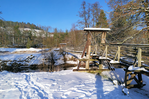 Read moreDie Hängebrücke bei Kastor hat eine lange Geschichte, die auf den Bergbau in der Nähe zurückgeht. Die Brücke oder Teile davon wurden mehrfach erneuert oder saniert. Zuletzt wurde sie im Jahr 2014 vom Bürger- und Verschönerungsverein Loope mit viel Eigeninitiative renoviert. Der BVV kümmert sich auch weiterhin um den Erhalt und die Sicherheit der Brücke.