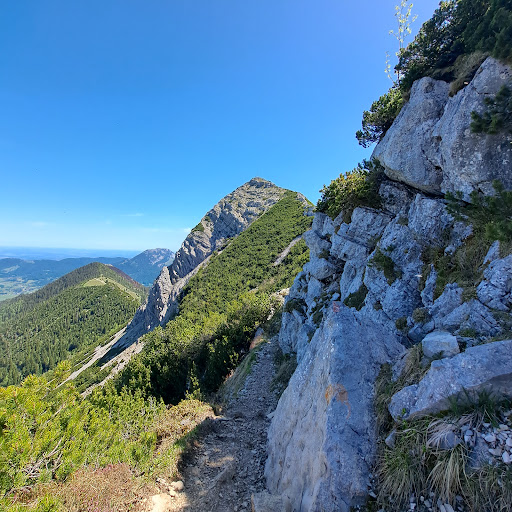 Wir haben einen Klettersteig gesucht und haben die Aiplspitz-Überschreitung gemacht. Wir sind in Fischbachau gestartet und haben unseren Endpunkt am Spitzingsee festgelegt. Der Wanderweg ist wirklich toll. Der Klettersteig selbst kann so eigentlich nicht beschrieben werden. Es gibt nur an zwei Stellen ein Seil mit circa 5 Meter. Alles andere muss ohne gemacht werden. Wer keine Erfahrungen hat, sollte den Steig nicht machen. Wir waren mit 4 Personen unterwegs, wobei 3 regelmäßig am Fels gesichert klettern. Alle fanden den Steig schon gefährlich, da es an vielen Stellen sehr steil und tief hinab geht. Man steht quasi an den Abbruchkante. Ein Fehltritt und Tschüss.