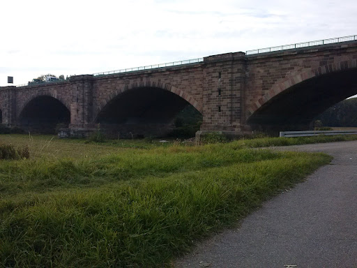 Die Theodor-Heuss-Brücke bei Mannheim-Sandhofen soll die einzige Autobahnbrücke in Deutschland sein, die über einen Fuß-/Radweg verfügt. Die Treppenaufgänge sind steil, und man kommt sich wie im Gemäuer einer mittelalterlichen Burg vor. Wer sein Rad da hochbringen will, muss über eine gute Konstitution verfügen, insgesamt vier Treppenabsätze sind zu überwinden. Dafür wird man dann oben mit einem weiten Blick auf den Fluss und die Wälder und Auen an den Ufern belohnt. Der Übergang ist übrigens nicht an der Seite der Brücke angelegt, sondern mittig, zwischen den beiden Kraftfahrzeugspuren. Bei starkem Verkehr findet man sich da ganz schön umdröhnt, und auf der anderen Seite muss man sein Rad die steilen Treppen wieder hinuntertragen, als ginge es auf den Grund einer Schlucht. Der rustikale Pfälzer Sandstein verstärkt noch den burgartigen Eindruck der vielen Bogen und Bogenfenster, mit deren Hilfe der Architekt offenbar an die romanischen Gestaltungselemente der großen pfälzischen Dome Worms und Speyer anknüpfen wollte, um seinem Bauwerk über die bloße Funktionalität hinaus Würde und überzeitliche Geltung zu verleihen. Wie immer man dazu steht: ein Erlebnis ist der Übergang allemal. Für den touristischen Besuch - vieleicht auch zu Fuß - empfiehlt sich Anfahrt auf der Mannheimer Seite mit der Straßenbahn bis Sandhofen, dann Spaziergang durch die Rheinauen bis zur Brücke, Aufstieg durch das hallende Gemäuer und oben Übergang und dann wieder Abstieg, und auf der Ludwigshafener Seite schließlich Gang durch den Rheinwald bis nach Oppau. Dabei wird man noch durch Ausblicke auf die futuristisch glitzernden Industriebauten der BASF belohnt. Dies alles zusammen - die Auenlandschaft, der Fluss, die wuchtige steinerne Architektur der Brücke, die metallenen Türme und Röhrenkonstruktionen der chemischen Fertigungsanlagen - vermittelt einen fast unwirklichen Gesamteindruck, wie ein Spaziergang in einem nicht ganz zusammenhängenden Traum. In jedem Fall...