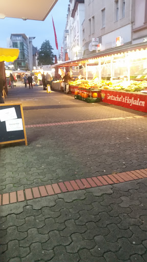 Read moreDer Wochenmarkt findet Mi & Sa statt auf der Länge Bornheim Mitte bis Höhe Wiesenstraße wo sich auch die Frankfurter Sparkasse und Gegenüber die Commerzbank befindet. Parkplätze sind leider Mangelware daher sollten Besucher entweder in einer Seitenstraße mit etwas Glück Parken oder die U Bahn, Bus und Straßenbahn ( Haltestelle Bornheim Mitte ) Nutzen. Die Auswahl und Preise finde ich für Ausreichend bis Gut. Außer Obst u. Gemüse kann man Brot / Kuchen, Blumen, Mediterran mit Schafskäse Oliven auch Gefüllt desgleichen Peperoni, Frische Eier aller Gewichtsklassen, Gewürze, Fischstand wo man auch ein Fischbrötchen bekommen kann oder auch ein Bratwurst Stand für den kleinen Hunger. Ob Fleisch / Wurst oder Geflügel und sogar Tee Trinker haben eine recht gute und große Auswahl und Obstweine werden dort Angeboten. Vor der Commerzbank kommen Weintrinker auf ihre Kosten ( auch mit Ausschank und Sitzgelegenheit). Leider sind diejenigen mit schwacher Blase im Nachteil weil es sehr wenig Möglichkeit gibt diese zu...