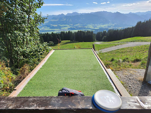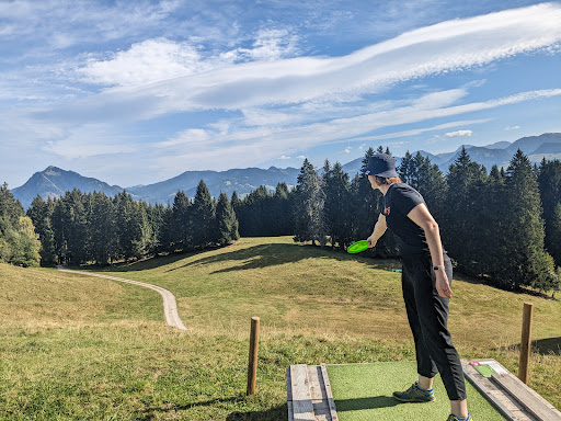 Schöner und anspruchsvoller Disc Golf Parcours (aber durch alternative Abwürfe auch gut für Anfänger geeignet) hat trotz hohen Temperaturen gerade im Waldbereich sehr viel Spaß gemacht, dort zu spielen! Auf den ersten Bahnen ist vor allem die Aussicht wunderschön, man muss bei den Wiesen aber gut aufpassen, wo man hintritt, um nicht umzuknicken. Die Frau (wir haben leider nicht über Namen gesprochen, sonst würde ich sie namentlich erwähnen!) die uns am Start empfangen hat war super freundlich und wir haben uns vor und nach der Runde noch eine Weile ausgetauscht und sie hat uns noch gute Tipps für unseren letzten Urlaubstag gegeben! Wenn wir nochmal herkommen, kommen wir definitiv nochmal wieder, am Besten bei etwas geringeren...