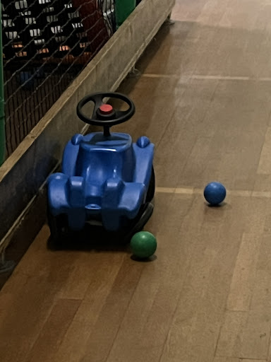 Der bisher tolle Kletterpark wird nicht mehr gepflegt, die Ballkanonen sind aus/defekt, die noch vorhandenen Bälle passen auch nicht mehr hinein. Früher waren die aus Schaumstoff, heute aus Plastik. Seilbahn-ähnliche Mini-Rutschen sind kaputt und fahren nicht mehr. Der Staub liegt dick in wenig genutzten Ecken. Vor einer Tür nach draußen vergammelt im Regen traurig eines der alten Kettcars.