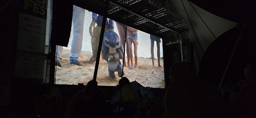 Something different, but wysiwyg. Picnicking is allowed, which is very nice, but there is also food and drinks to buy (popcorn too of course). The seating options are not very comfortable, so if you can, bring a pad or something like that to sit on. I thought the screen was a little on the small side, considering the distance to the seats. The main thing however is being outside with friends, watching a cool movie. And that...